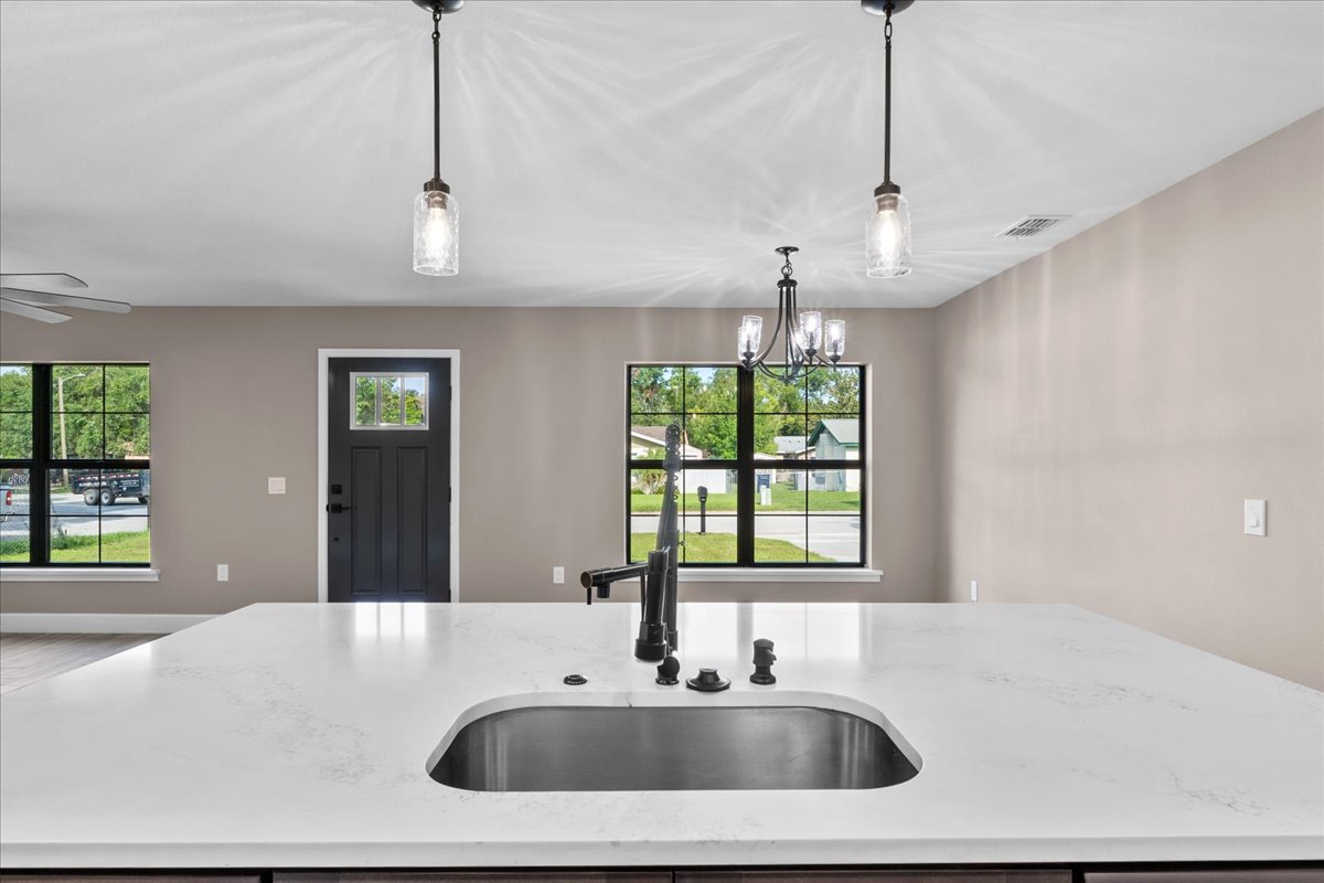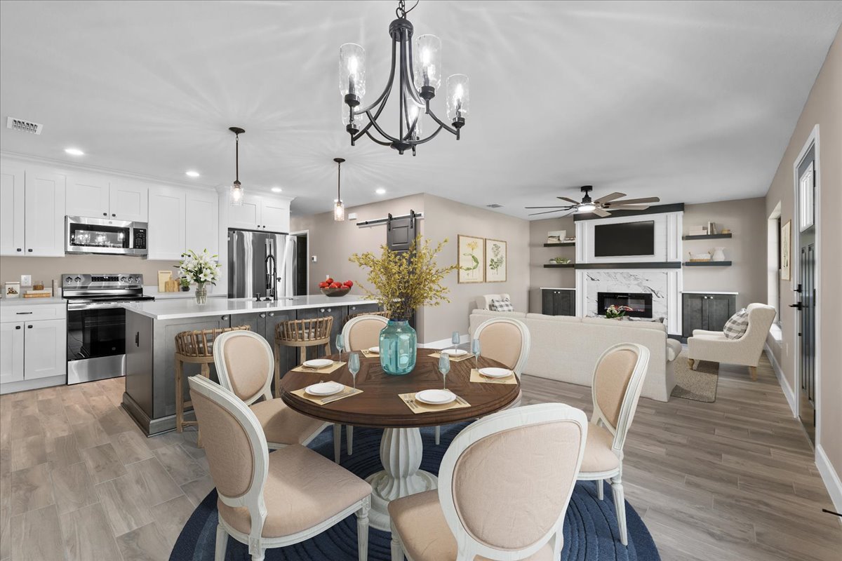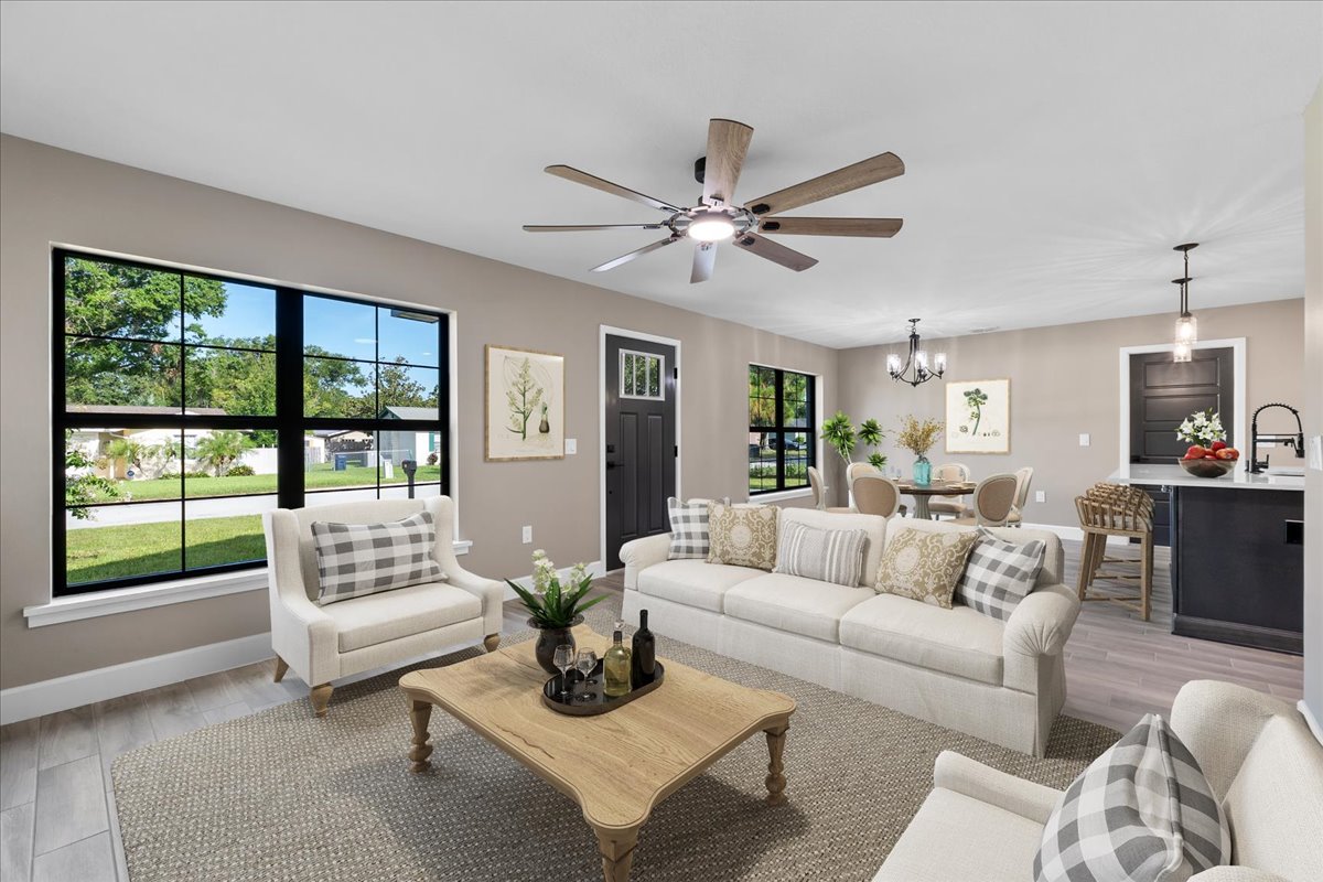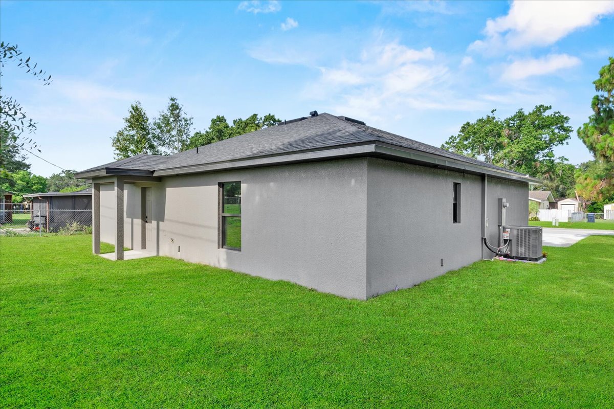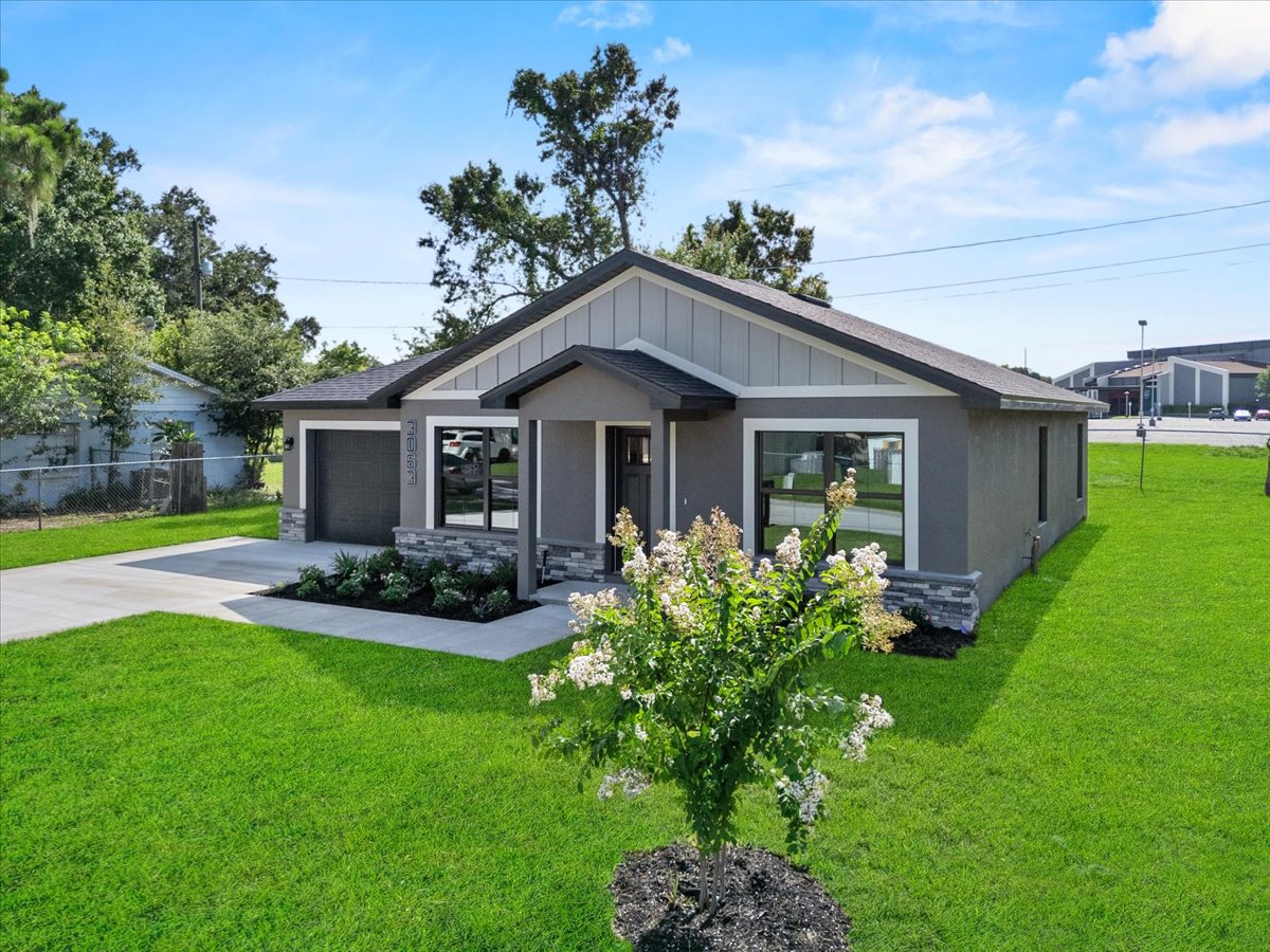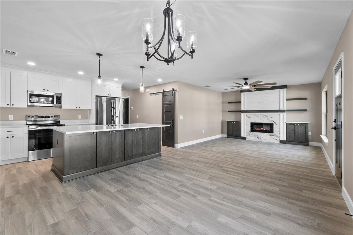 Stunning New Construction Home in Auburndale! Whether you’re a First-Time Home Buyer, Retiree or just downsizing this is the home for you! This beautifully designed three-bedroom, two-bath gem offers over 1,300+ square feet of luxurious living space, and it has never been lived in—just completed and ready for you to make it your own. Step inside to discover an inviting open floor plan adorned with elegant wood-look ceramic tile flooring throughout. The spacious living room features a cozy electric fireplace, complemented by stylish built-ins, creating the perfect ambiance for relaxation and entertaining. The heart of this home is the stunning kitchen, boasting classic white shaker cabinets with crown molding, gleaming granite countertops, and brand new stainless steel GE appliances. A charming barn door pantry adds a touch of farmhouse flair, making this kitchen both functional and aesthetically pleasing. Retreat to the large master bedroom, complete with an en suite bathroom that exudes luxury. Enjoy the spa-like experience with beehive tile flooring in the shower, rain shower head, floor-to-ceiling ceramic tile in shower, dual sinks, and a nice walk-in closet. The guest bath also boasts granite counter tops and floor to ceiling tile in the tub/shower. Additional highlights include an inside laundry room for added convenience, ceiling fans in all rooms for comfort, and the bonus of no backyard neighbors, providing a sense of privacy and tranquility. Close to the Polk County Parkway, Schools, Shopping and Restaurants. Don’t miss this opportunity to own a brand-new home in a desirable location. Schedule your showing today and experience the perfect blend of modern living and farmhouse charm!