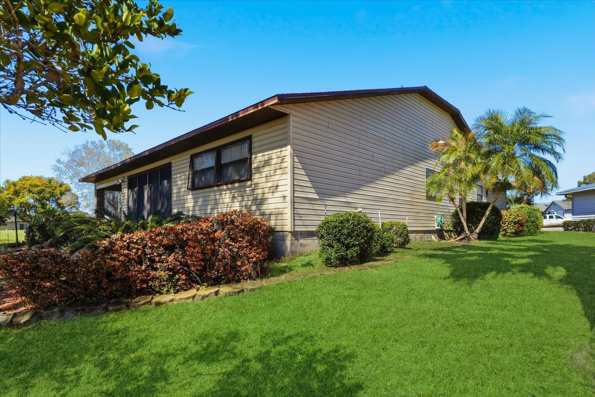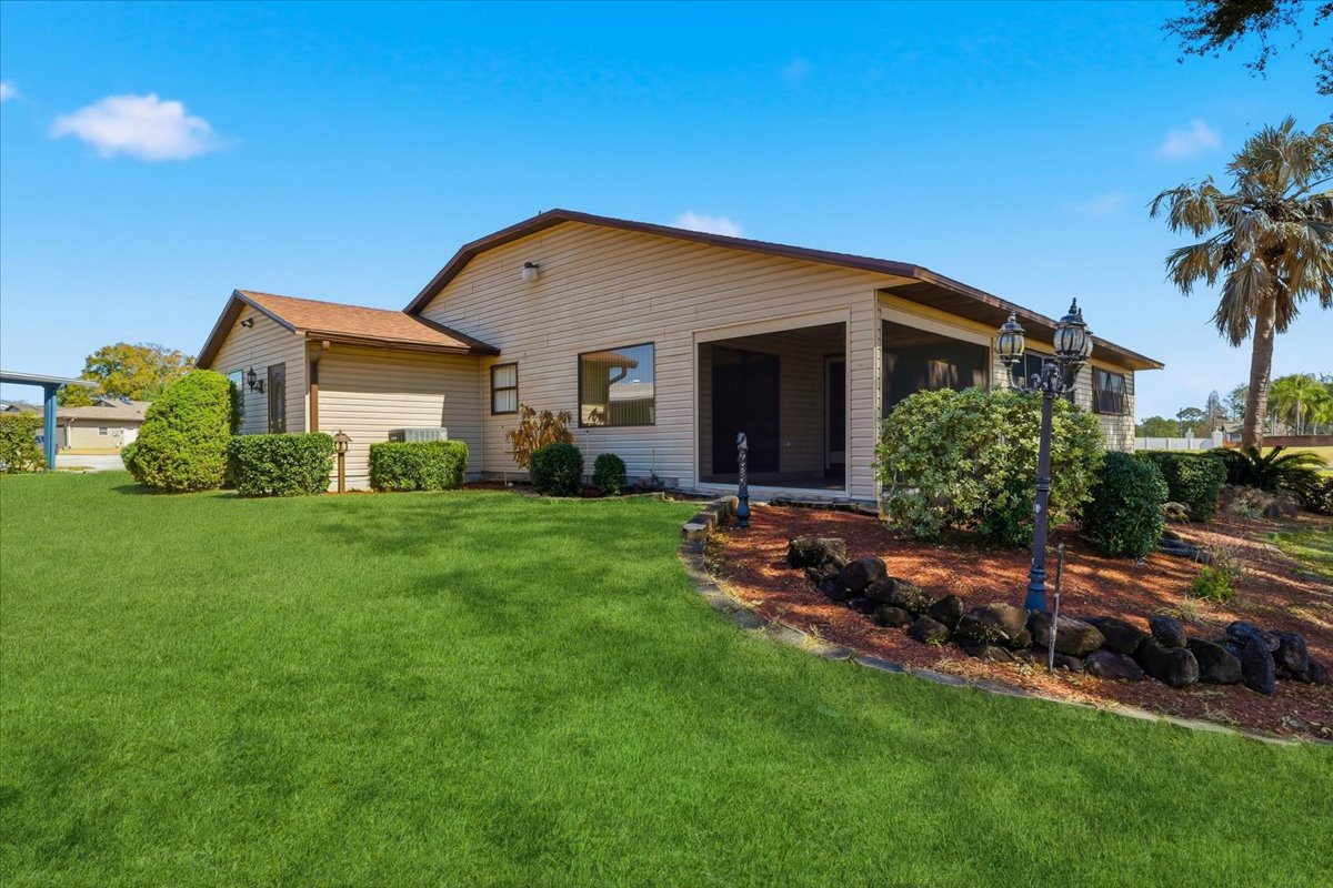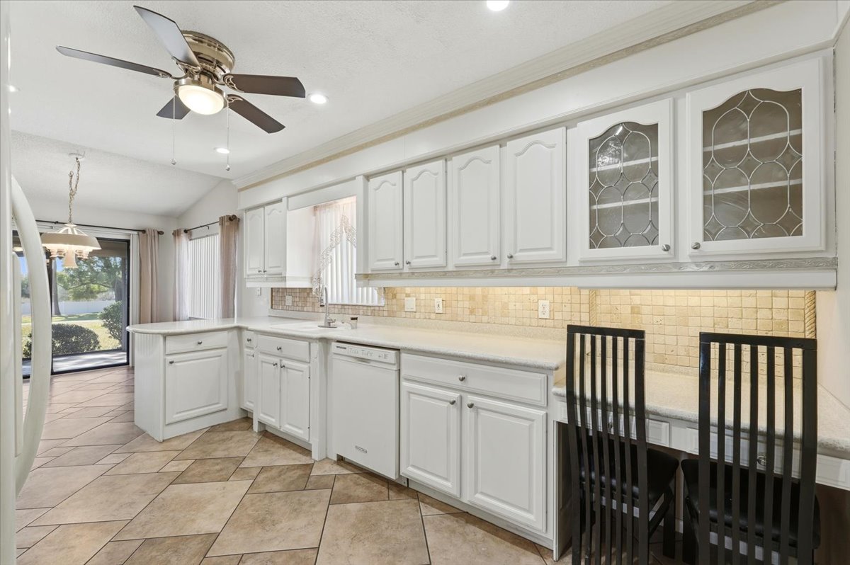 Experience the ultimate Florida lifestyle in this immaculate golf course home situated on the 15th hole within the prestigious 55+ gated community of Highland Fairways. This stunning residence boasts 1,839 square feet of air-conditioned living space and 2,794 total square feet, including a bright Florida room and a versatile screened-in patio. The interior is defined by elegance, featuring Bruce hardwood floors throughout the living room and bedrooms, complemented by sophisticated crown molding. The gourmet kitchen is a chef’s delight, updated with corian countertops, kitchen-aid appliances, a breakfast bar, and a cozy eat-in dinette. Modern touches abound with new recessed lighting, under-counter illumination, a brand-new microwave, and a dedicated insinkerator for instant hot water. For effortless outdoor living, the kitchen opens to a screened patio equipped with an electric motor for 2 roll-up screens. The primary suite serves as a private sanctuary, featuring a tray ceiling, crown molding, and sliding glass doors that lead directly to the Florida room. The ensuite master bathroom has been beautifully modernized with his-and-hers above-counter sinks, a dedicated makeup vanity, and two large walk-in closets. This thoughtful split floor plan places two additional spacious bedrooms on the opposite side of the home, both featuring hardwood floors and access to an updated guest bath with a new toilet and an above counter sink. Peace of mind comes standard with significant recent upgrades, including a BRAND NEW ROOF installed in JANUARY 2026, a tankless natural gas water heater, new garage door opener, updated plumbing and enhanced attic insulation for maximum energy efficiency. Storage is never an issue with three separate attic access points and a specialized golf cart garage that can also serve as a workshop, in addition to the two-car garage. Located in the highly desirable Highland Fairways, you will enjoy world-class amenities including a community pool, tennis courts, golf, and a vibrant clubhouse. Ideally located near shopping, dining, and medical facilities, this move-in-ready home is waiting for you to bring your clubs and start living the dream.