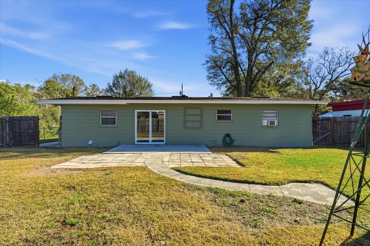 Your Perfect Home Awaits in Auburndale! NO HOA! This charming 3-bedroom, 1-bathroom home is the perfect “just right” size for a first-time buyer or a retiree slowing down. Offering nearly 1,100 sq. ft. of cozy living space, this MOVE-IN-READY property combines unique character with the BIG TICKET UPDATES you’ve been looking for. As soon as you walk in, you’ll love the warm living room featuring laminate floors and rustic log-cabin style wood accents. It’s the perfect spot to curl up for a movie night! Need a home office, a gaming room, a playroom or maybe a craft or hobby room? The large bonus room (12.5 X 17) to the right of the living room gives you the flexibility to design your home exactly how you need it. The kitchen is ready for your first housewarming dinner! It features appliances that are only 2–3 years old and a dining area that opens up to the backyard through the new sliding glass door with built in blinds (2023). Buying your first home can be a big step or even slowing down, but this one takes the stress out of homeownership with these major upgrades: NEW ROOF (2023), EXTERIOR PAINT (2023), UPDATED BATHROOM with beehive ceramic tile and stone-top vanity. Home REPLUMBED to Copper pipes. The backyard is a true highlight for anyone who loves the outdoors: Your furry friends will love the large (10 x 23.5) fenced-in dog run with a concrete floor—easy to clean and super secure or use it to park a boat or any other outdoor toys. The fully fenced backyard offers total privacy for weekend BBQs, plus a large workshop (10 x 12) to keep your outdoor equipment clutter-free. The front yard also has 4 ft vinyl Pickett fencing for that farmhouse feel. This home is located within minutes to Caldwell Elementary School, Publix shopping center, the city park and library. Close to restaurants and shopping making this the ideal spot to settle down in. Don’t miss out on this MOVE-IN READY Auburndale home! Call today for your private showing.